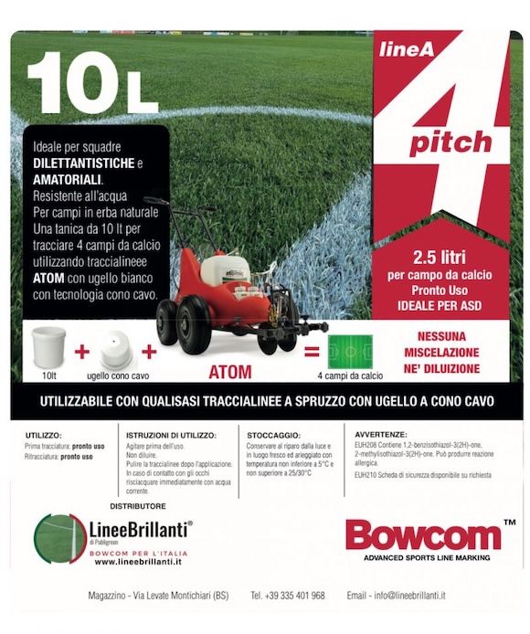 Di cosa si occupa LineeBrillanti: Traccialinee professionali, vernici per linee del campo di gioco, pronte all’uso, diluibili, per erba naturale o sintetica. Pigmenti coloranti per tappeti erbosi sportivi che migliorano l’aspetto e prolungano la resa visiva del manto erboso.