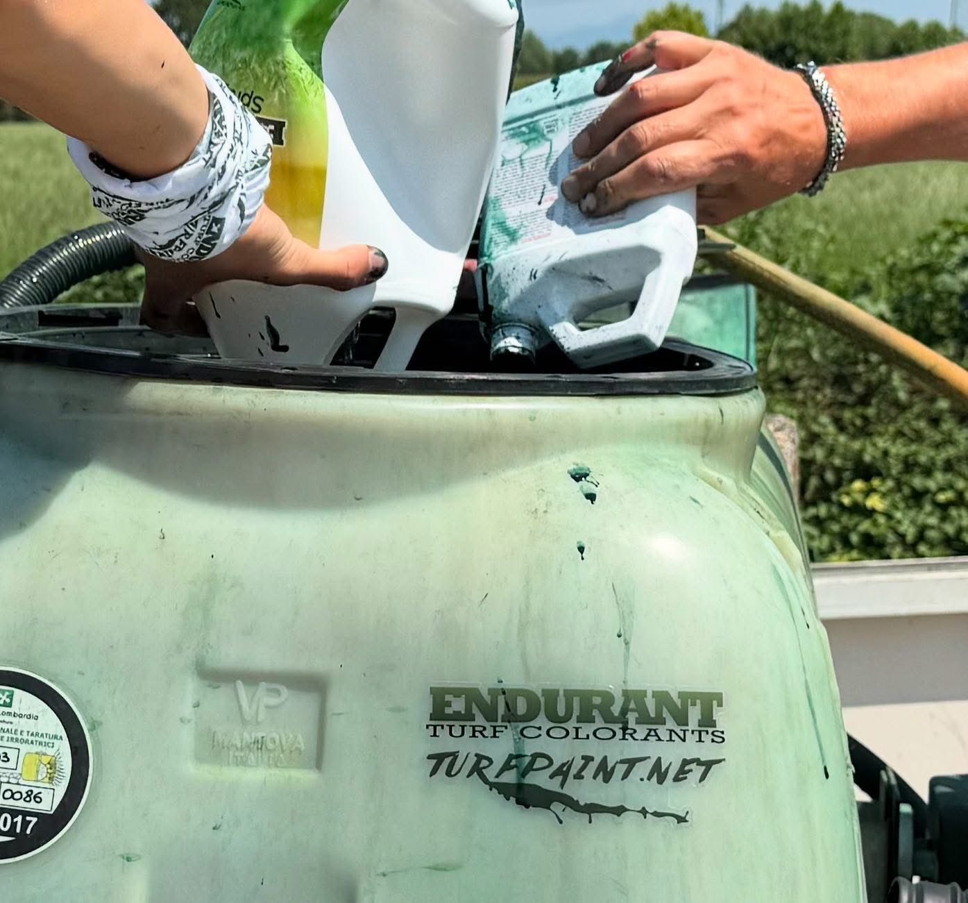 Le pigmentazioni del tappeto erboso sono ormai una pratica diffusa in ambito sportivo: permettono di mantenere un colore verde naturale e uniforme anche nei periodi di stress o dormienza. Tuttavia, senza un fissativo specifico, il rischio è che i pigmenti trasferiscano parte del colore sugli indumenti dei giocatori a causa del contatto diretto con l’erba.