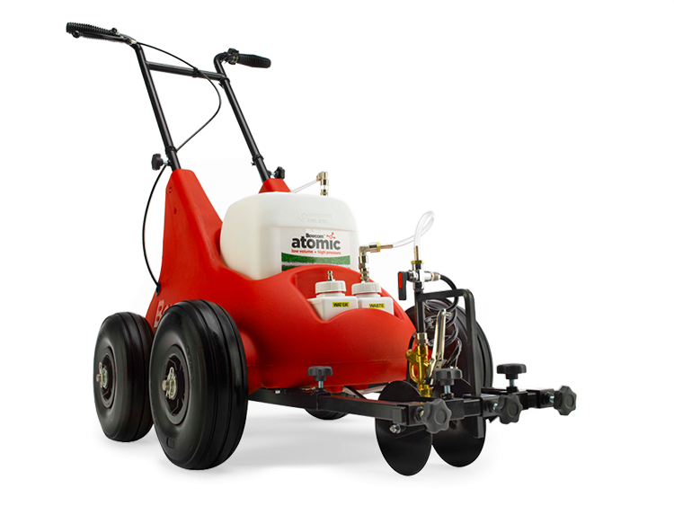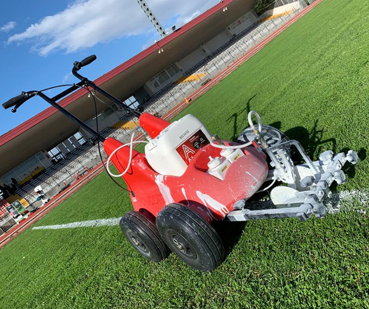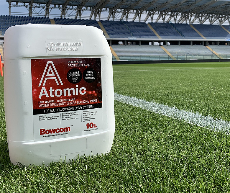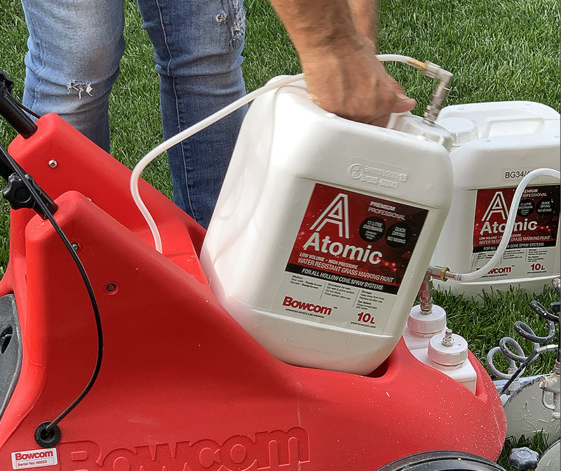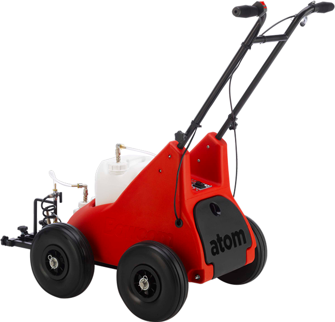 Pompa ad alta pressione, vernice pronto uso a basso volume e ugelli con tecnologia a cono cavo sono tre caratteristiche fondamentali di ATOM, l’innovativo traccialinee per campi sportivi che ti consente di segnare un intero campo da calcio con poco più di un litro di vernice.