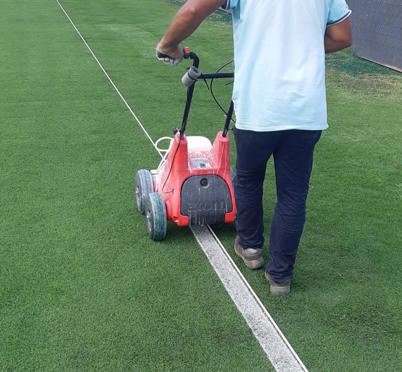 I bassi consumi del carrello segnacampo Atom, sono uno dei vantaggi che potrete ottenere scegliendo ATOM, la macchina per tracciare campi da calcio che utilizza solo vernici pronto uso a basso volume di utilizzo appositamente studiate per lavorare ad alta pressione, questo sistema, ne fa il carrello per tracciare le linee del campo, che ti permetterà di tracciare linee fino a 9 campi da calcio con una sola tanica di vernice.